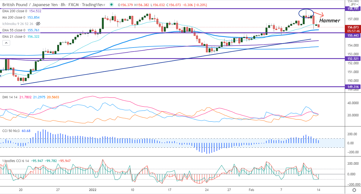 The immediate resistance is around 157, any break above targets 157.75/158.50. Significant bullish continuation if it breaks 158.50. On the lower side, near-term support is at 155.50. Any indicative violation below targets 155/154/153/151.95/150.