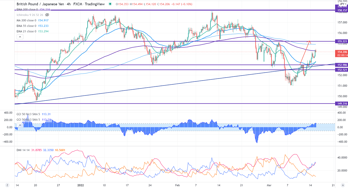 The immediate resistance is around 154.50, any break above targets 155.30. Significant bullish continuation if it breaks 155.30. A jump to 156/157 is possible. On the lower side, near-term support is at 153.50. Any indicative violation below targets 152.75/152.