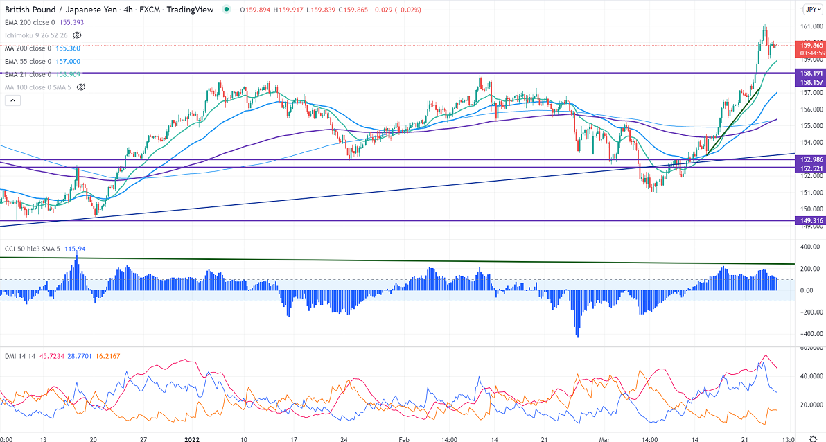 The immediate resistance is around 161, any break above targets 163.80/165. On the lower side, near-term support is at 158.70. Any indicative violation below targets 158/157.75.
