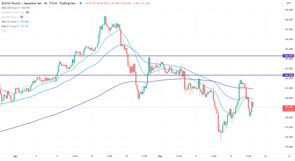 On the lower side, immediate support is around 159, breach below will drag the pair to the next level to 157.85/157/155. The minor resistance to be watched is 162, a break above that level confirms intraday bullishness, and a jump to 164.25/165 is possible.