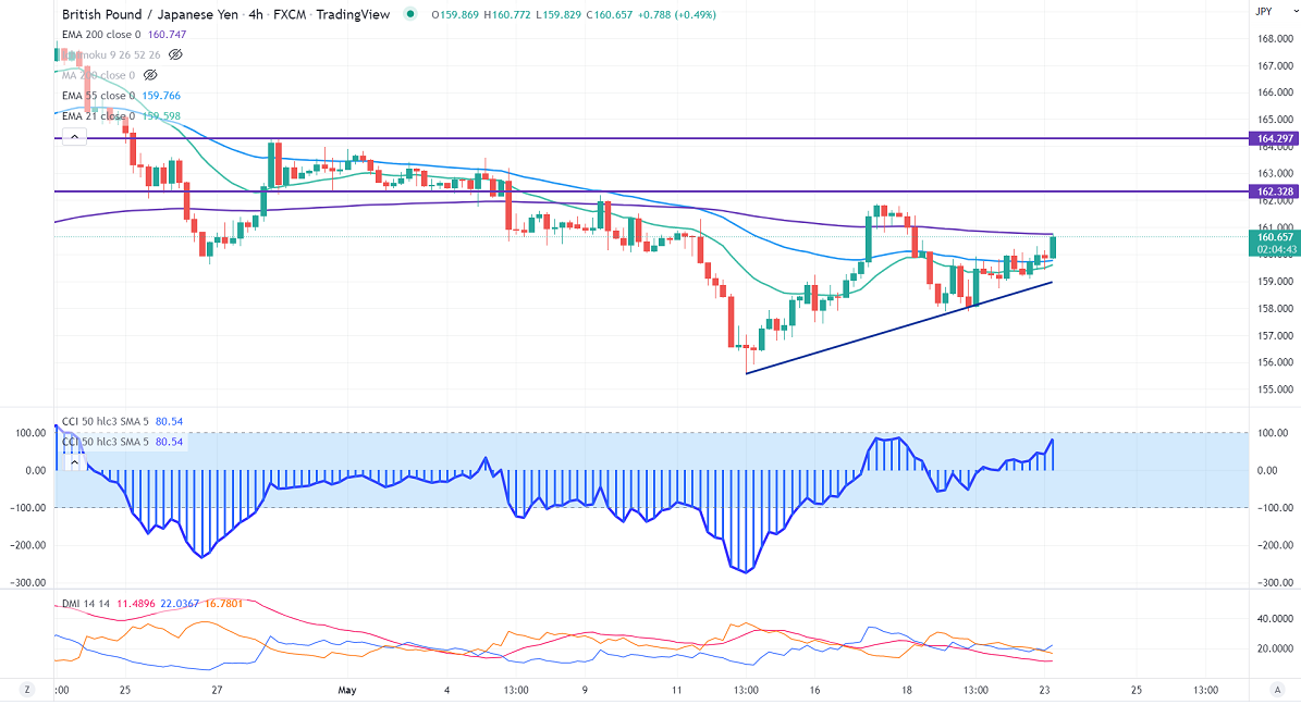 On the lower side, immediate support is around 159, breach below will drag the pair to the next level to 158/157/155. The minor resistance to be watched is around 160.50, a break above that level confirms intraday bullishness, and a jump to 161/162/164.25/165 is possible.