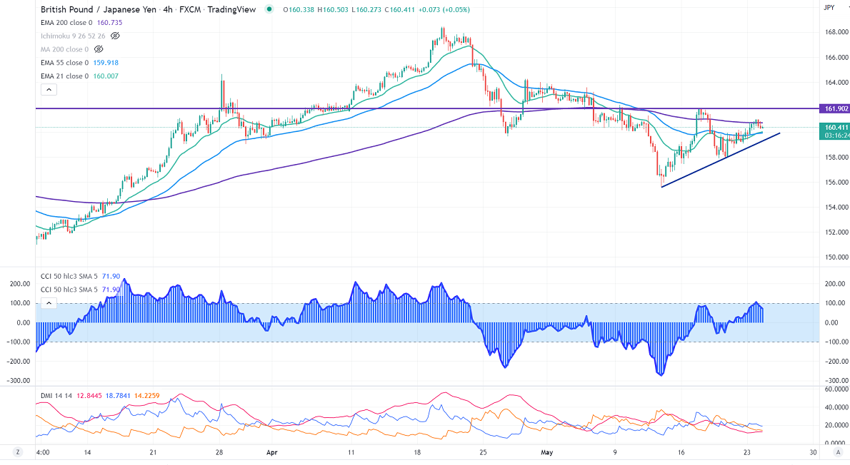 On the lower side, immediate support is around 159, breach below will drag the pair to the next level to 158/157/155. The minor resistance to be watched is around 160.50, a break above that level confirms intraday bullishness, and a jump to 161/162/164.25/165 is possible.