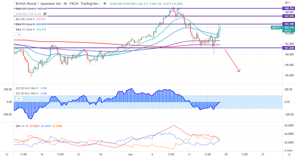 GBPJPY surged sharply and gained more than 500 pips on a sharp u-turn in the Japanese yen. The minor pullback in pound sterling also supports the pair at lower levels. It has pared some of its gains made yesterday as weak economic data will prevent BOE from an aggressive rate hike. Any breach above 1.2430 confirms a minor bullish trend. Technically in the 4-hour chart, the pair is holding above short term (21- and 55 EMA) and above 200 MA (161.80). Any close above 165.80 will take the pair to 166.70/167.80/168.85. GBPJPY hits an intraday high of 165.55 and is currently trading around 165.11.