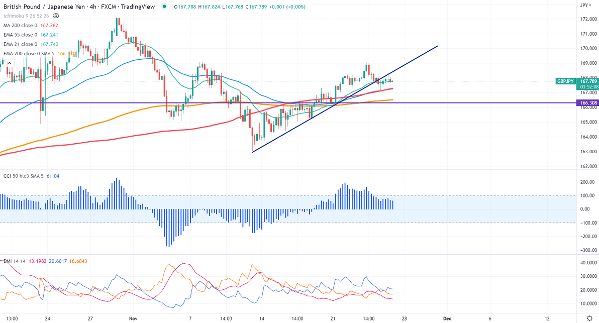 The near-term support is around 167, a breach below targets 166.20/165. the immediate resistance is around 168.50, a jump above will take the pair to 169.10/170.