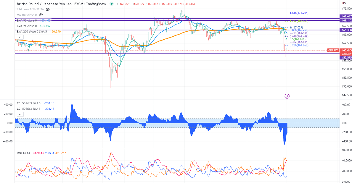GBPJPY showed a minor pullback after a massive sell-off yesterday. It hits a high of 161.03 and is currently trading around 160.51.