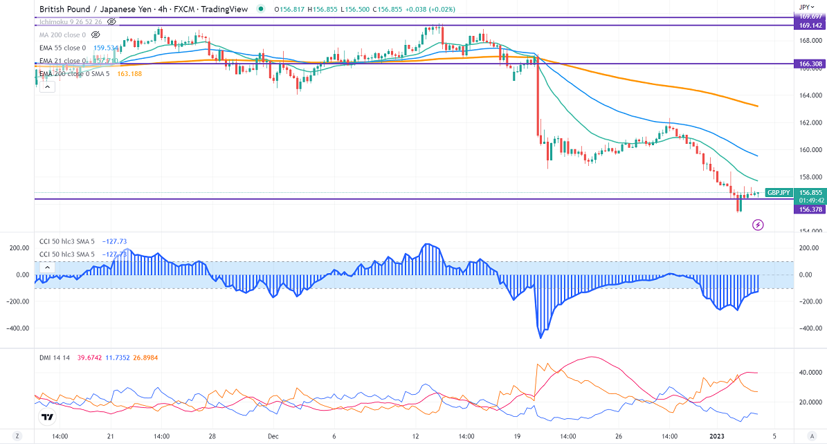 GBPJPY showed a dead cat bounce after hitting a multi-month low of 155.35. It hits an intraday high of 157.24 and is currently trading around 156.70.