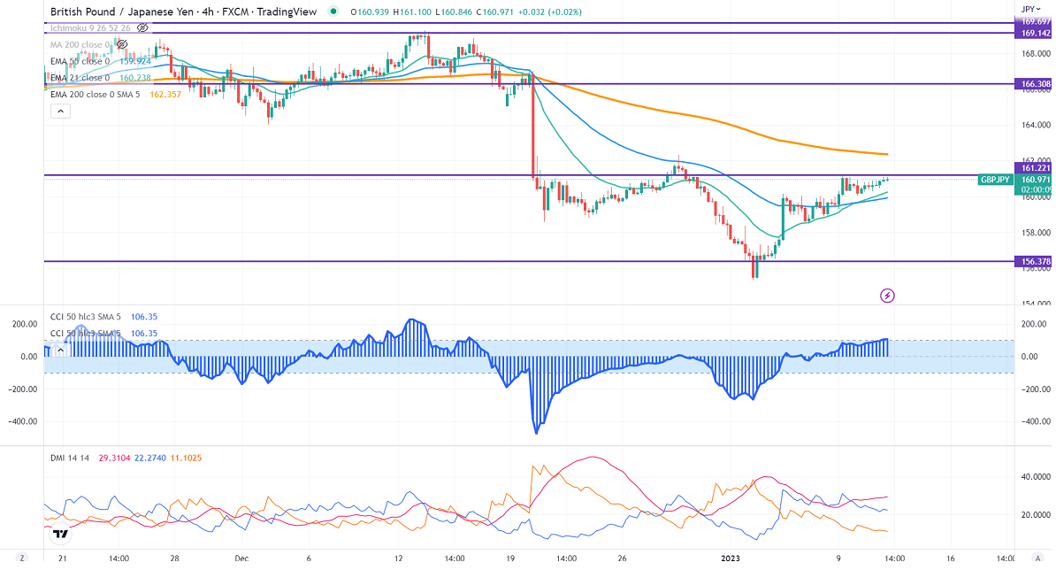 GBPJPY recovered on the strong Pound sterling. It hits an intraday high of 161.10 and is currently trading around 160.96.