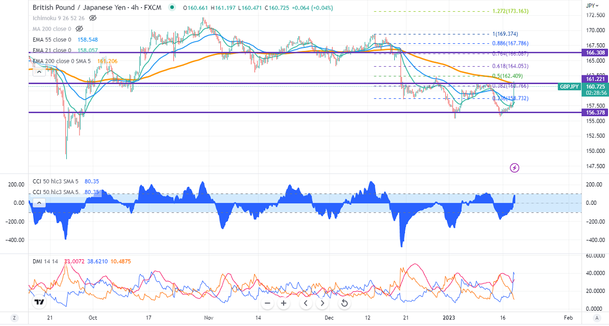 The near-term support is around 160, a breach below targets of 159.30/158.46. The immediate resistance is around 161.60, any violation above will take the pair to 162.35/163.