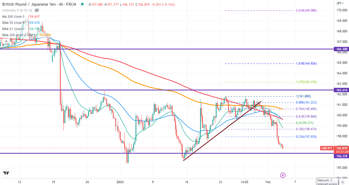 GBPJPY was one of the worst-performing pairs this week due to the weak Pound sterling. It hits a low of 156.82 and is currently trading around 157.15.