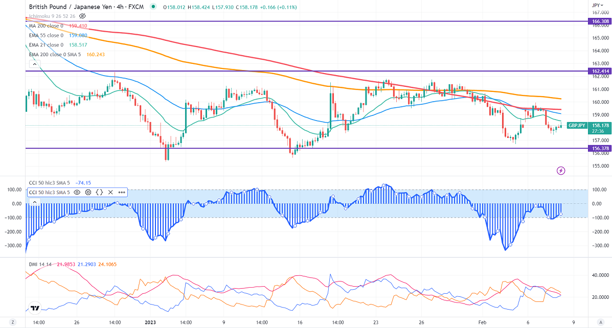 The near-term support is around 158, a breach below targets of 156.70/155.60/155. The immediate resistance is around 158.50, any violation above will take the pair to 160/161.80/163.
