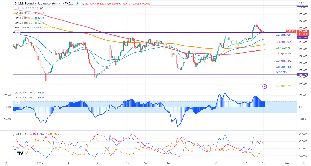 The near-term support is around 162.50, a breach below targets of 162/161/160.35/160/159/158/156.70/155.60/155. The immediate resistance is at 163.75, any violation above will take the pair to 165/166.