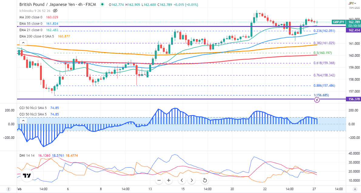 The near-term support is around 162.45, a breach below targets of 161/160.35/160/159/158/156.70/155.60/155. The immediate resistance is at 163.20, any violation above will take the pair to 165/166.