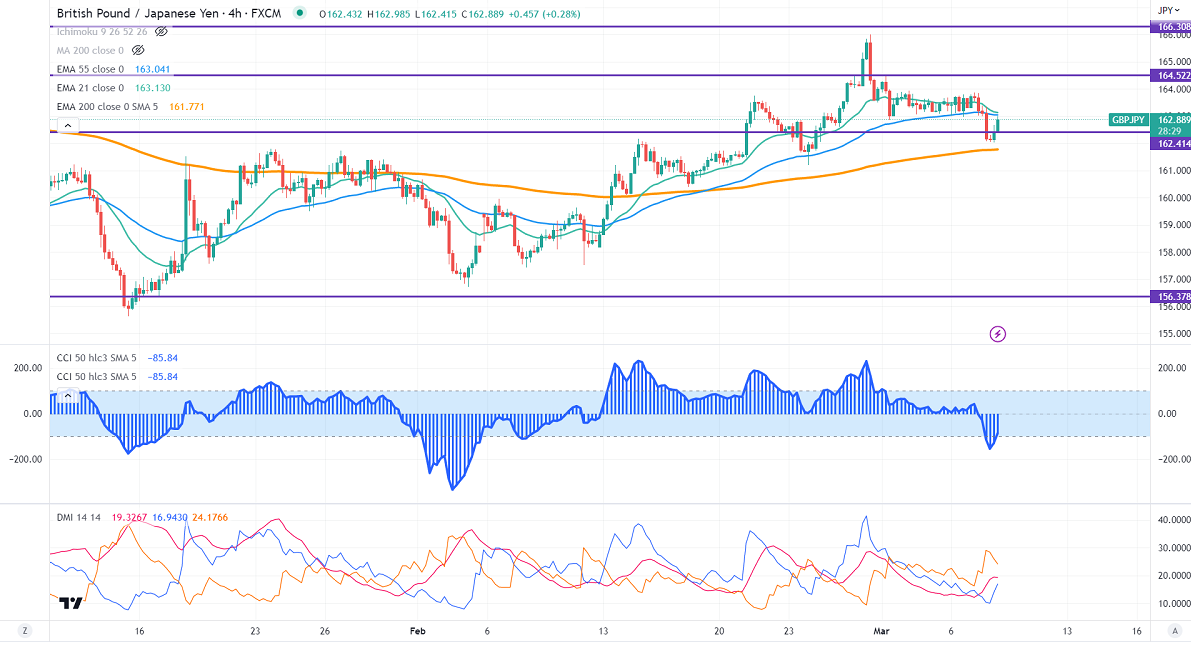 GBPJPY showed a minor pullback on the weak yen. It hits an intraday high of 162.98 and is currently trading around 162.915.