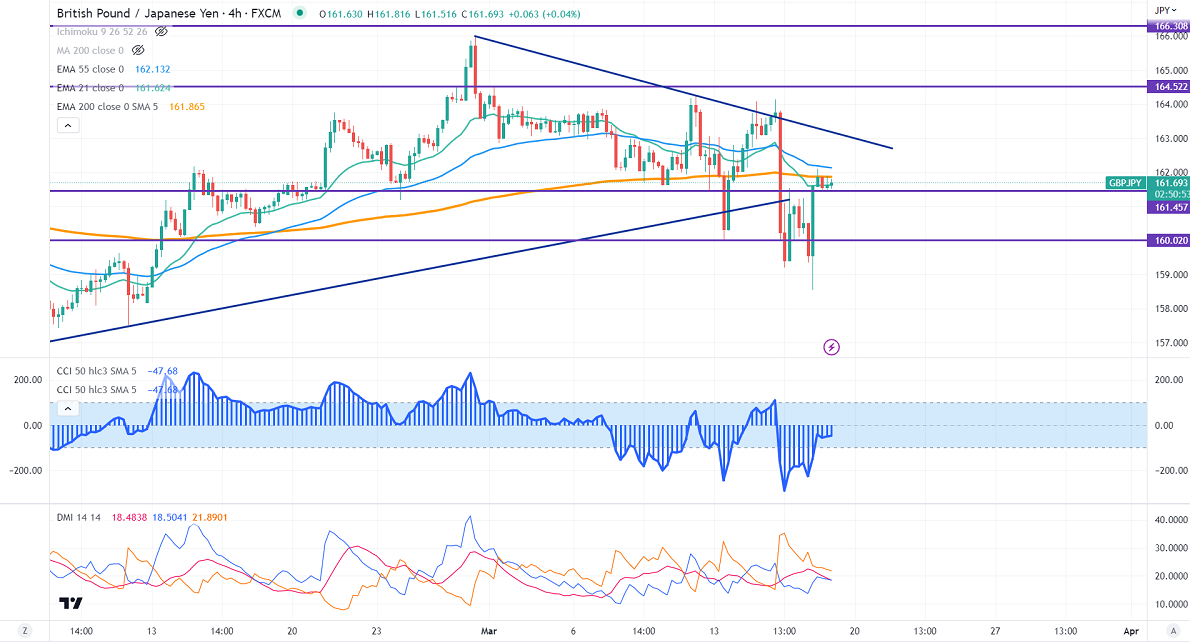 The near-term support is around 161.40, a breach below the targets of 160.66/160/ 159.20/158.55. The immediate resistance is at 162.20, any violation above will take the pair to 163/164.