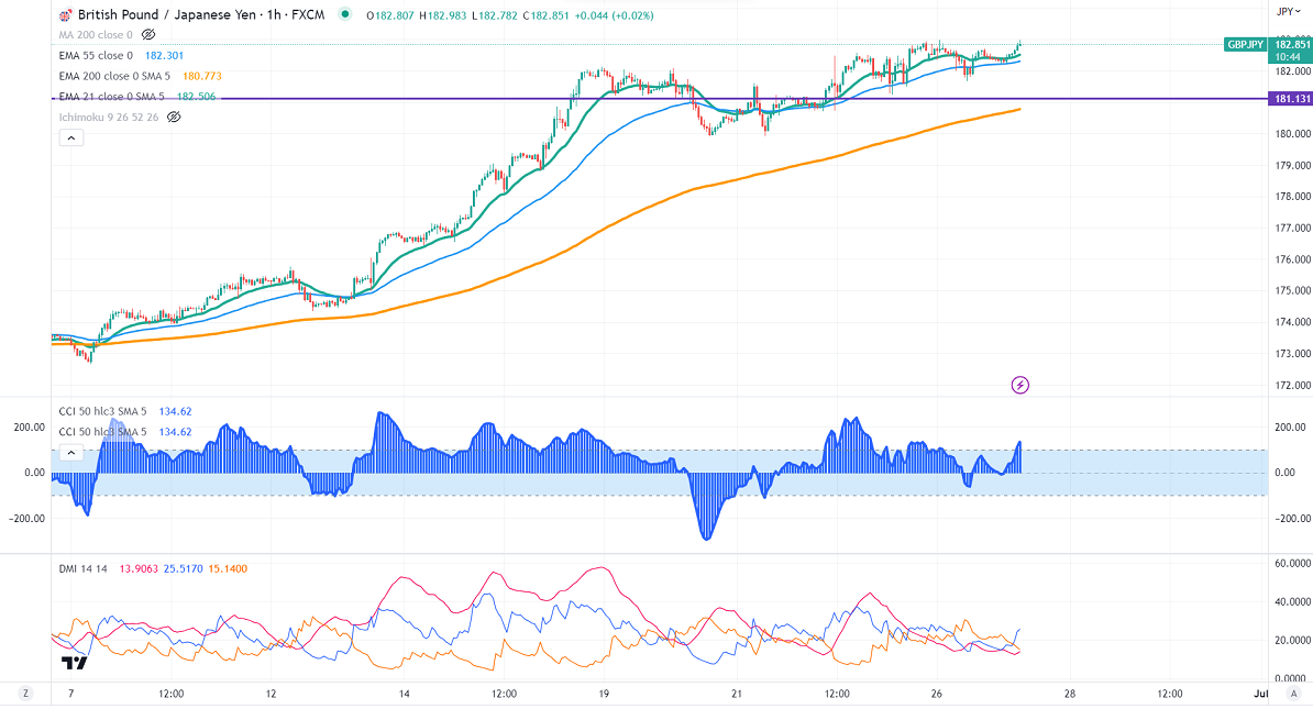 GBPJPY recovered above 182.50 on the weak yen. It hits a low of 181.68 and is currently trading around 182.89.
