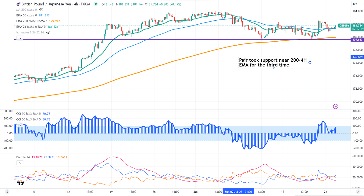 GBPJPY lost its shine on the weak pound sterling. It hits a low of 180.74 and is currently trading around 181.80.