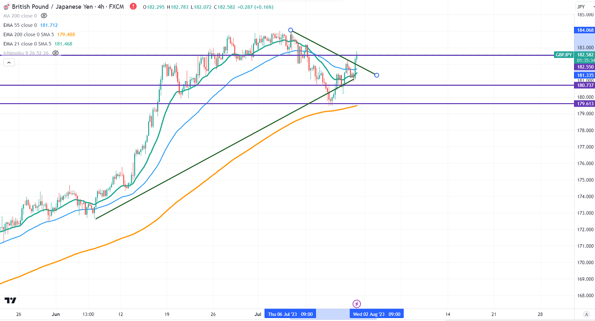 The near-term support is around 181.50, a breach below the target of 180.80/180. The immediate resistance is at 183, any violation above will take the pair to 184/185.