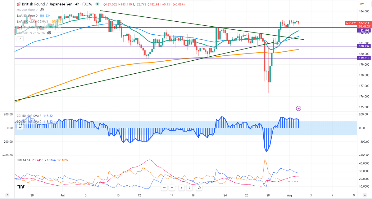 The near-term support is around 182.50, a breach below the target of 182/181.50/180.80/180. The immediate resistance is at 183.25, any violation above will take the pair to 184/185.