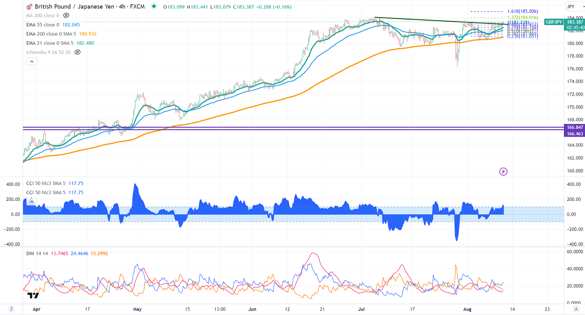 The near-term support is around 182.50, a breach below the 181.75/181/180.40 target. The immediate resistance is at 184, any violation above will take the pair to 185/186.