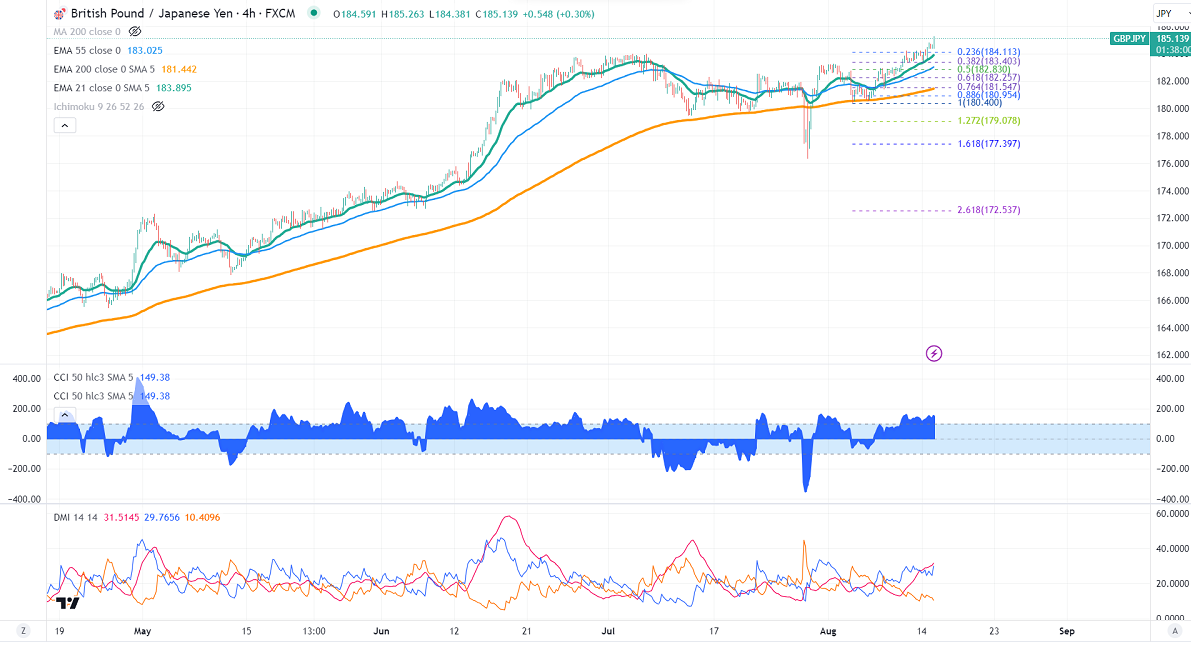 GBPJPY touched a fresh monthly high on the weak yen. It hit a high of 185.26 at the time of writing and is currently trading around 185.108.