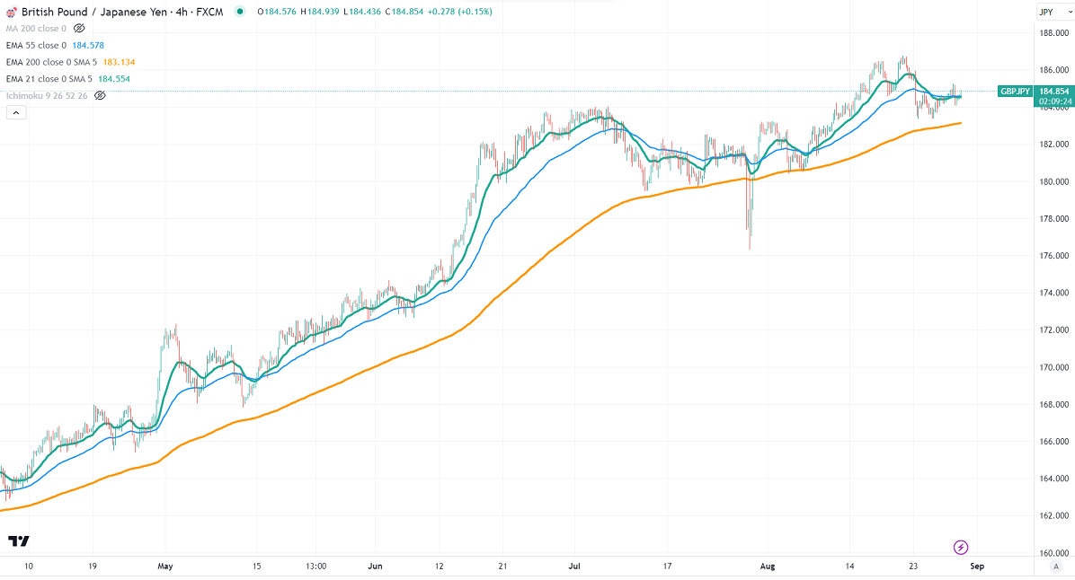 GBPJPY lost its shine on the strong yen. It hit a low of 184.06 and is currently trading around 184.678.