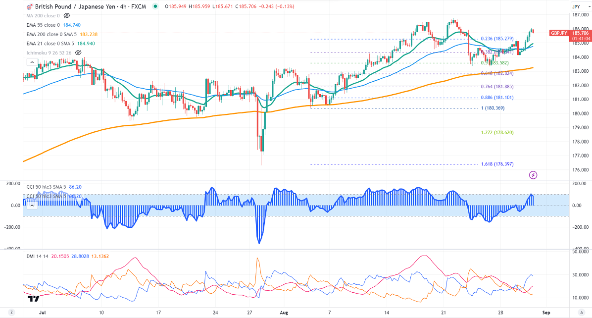 The near-term resistance is around 186, a breach above targets 186.50/187/188.50. The immediate support is at 185.25, any violation below will drag the pair to 184.70/184/183.35.