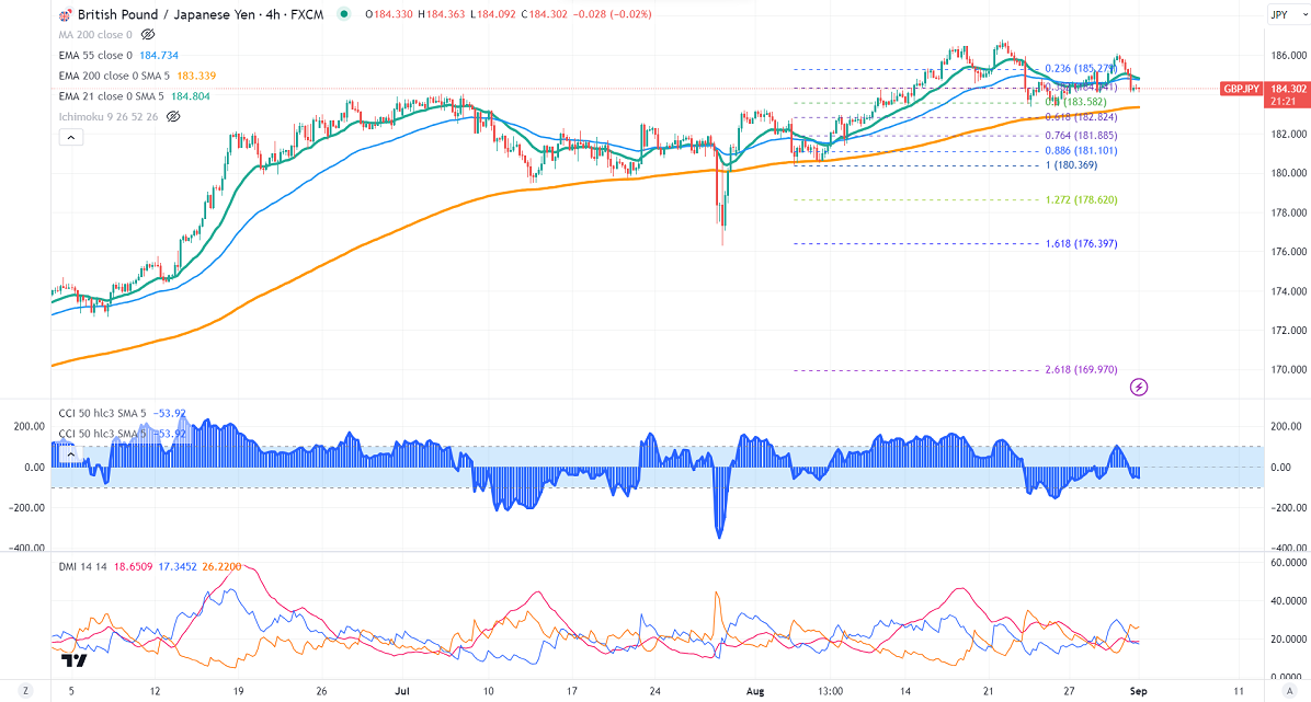 The near-term resistance is around 185, a breach above targets 186/186.50/187/188.50. The immediate support is at 184, any violation below will drag the pair to 183/182
