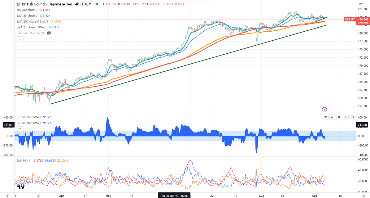 GBPJPY lost its shine on the weak Pound sterling. It hit a low of 184.31 yesterday and is currently trading around 184.43.