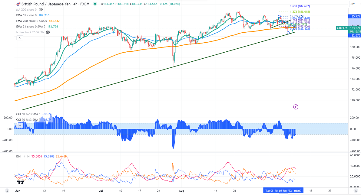 The near-term resistance is around 183.90, a breach above targets 184.60/185. The immediate support is at 182.80, any violation below will drag the pair to 182/180.