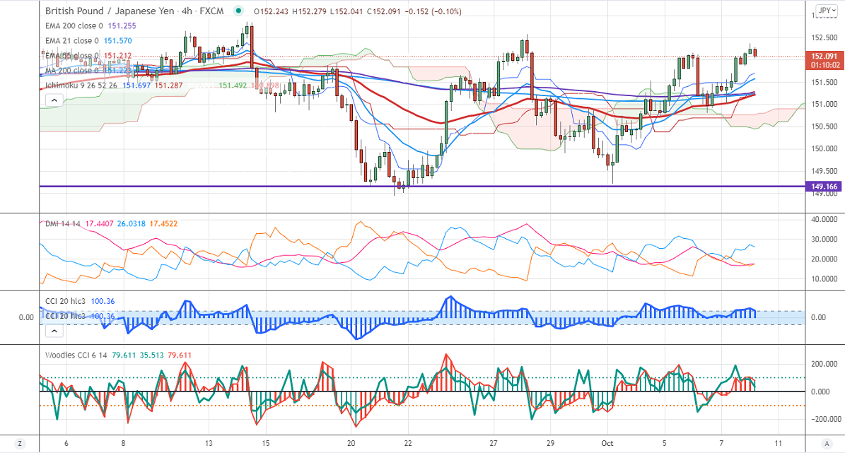 The pair's immediate resistance is around 152.60, any surge above targets 153/153.50. Significant bullish continuation if it breaks 153.50. On the lower side, near-term support is around 151.50. Any indicative violation below targets 151/150.70/150/149.20.