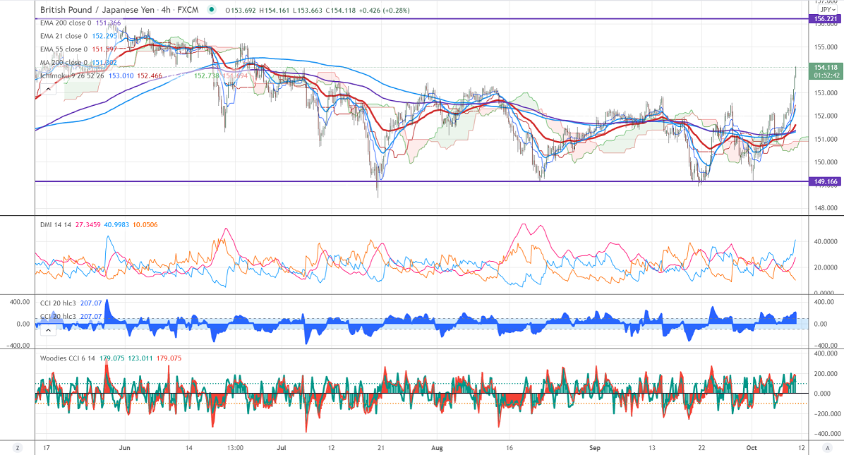 The pair's immediate resistance is around 154.25, any surge above targets 155/155.60. Significant bullish continuation if it breaks 154.25. On the lower side, near-term support is around 153.40. Any indicative violation below targets 153/152.50/152.