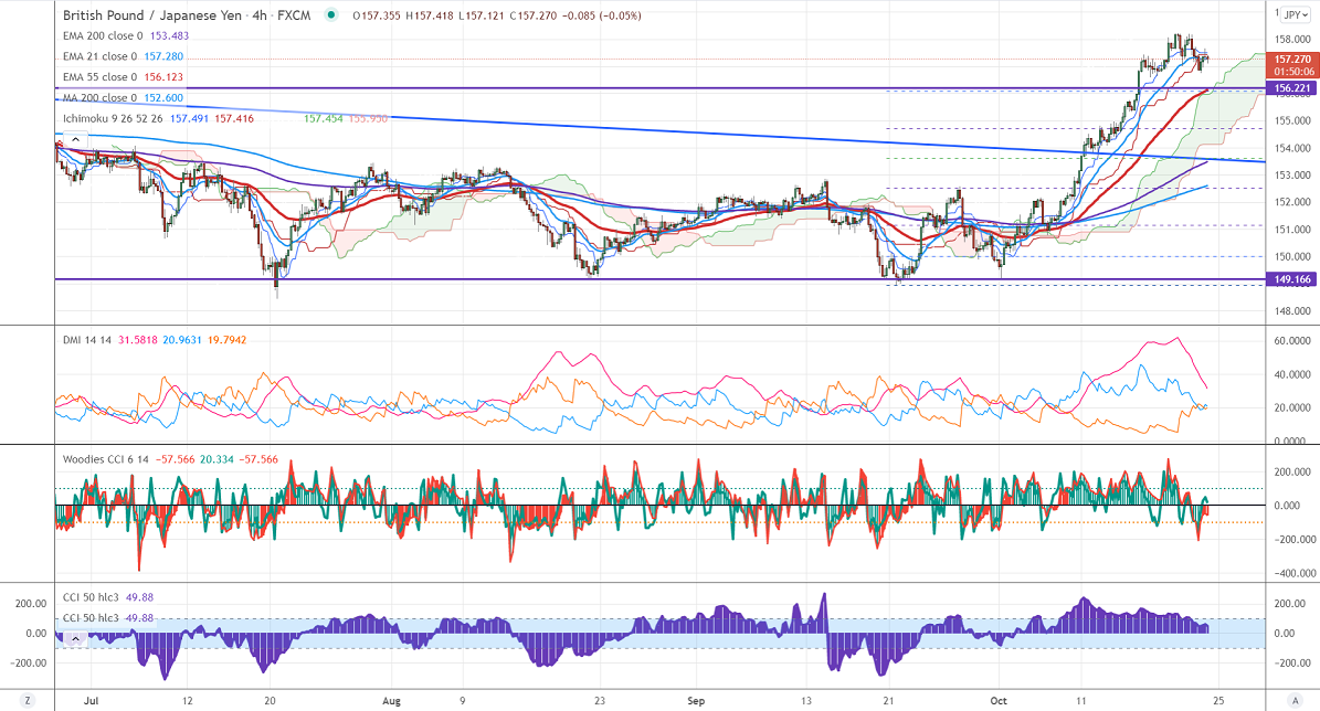 The immediate resistance is around 157.50, any break above targets 158.25/160/162. Significant bullish continuation if it breaks 162. On the lower side, near-term support is around 156.80. Any indicative violation below targets 156.10/155.
