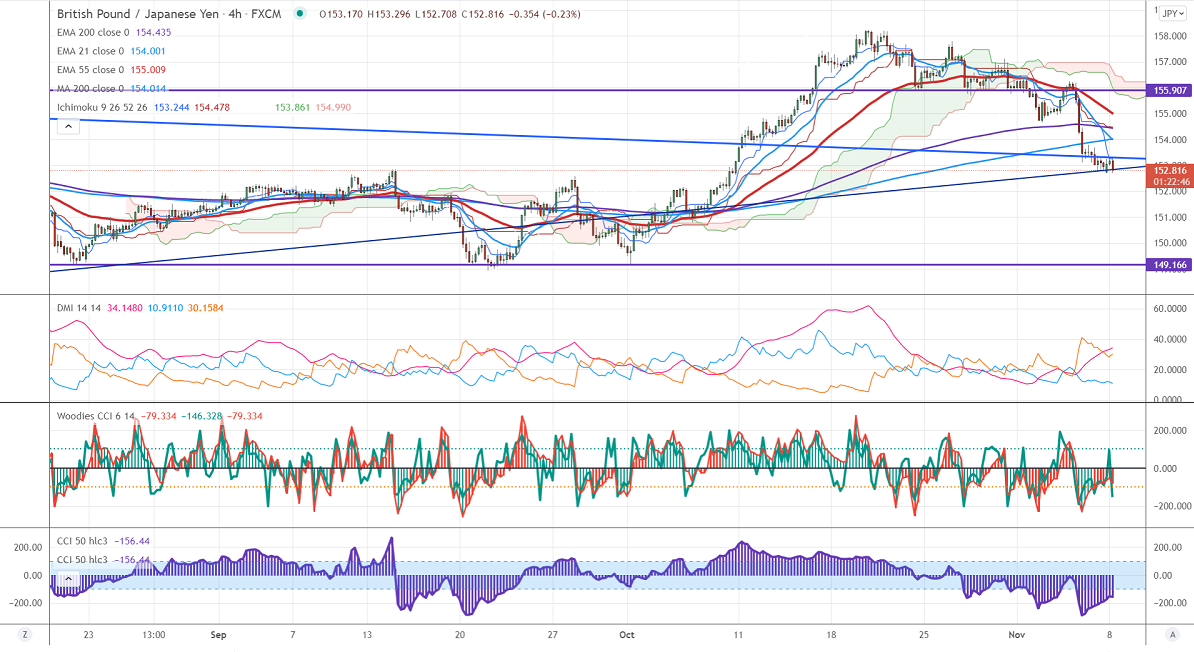 The immediate resistance is around 153.25, any break above targets 153.80/ 154.55/155. Significant bullish continuation if it breaks 158.50. On the lower side, near-term support is around 152.50. Any indicative violation below targets 152.18/151.60.