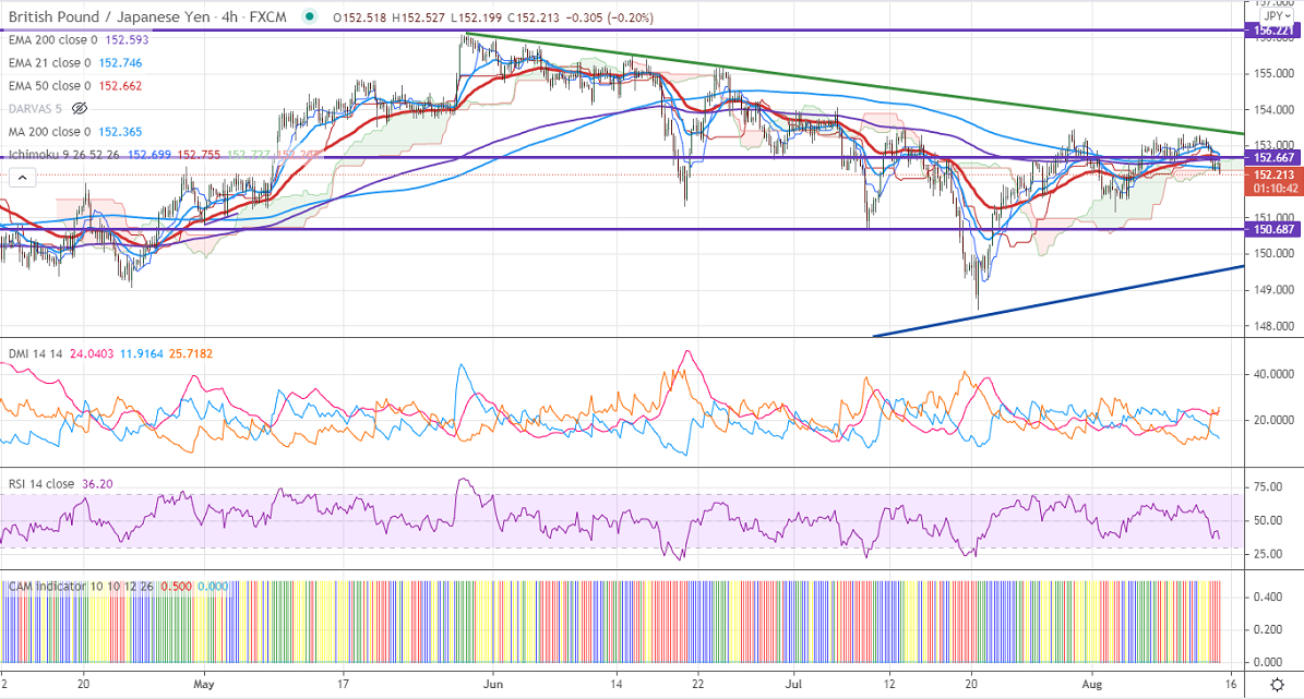 The pair's immediate resistance is around 152.80, any jump above targets 153.30/153.50/154/155.05/156. Significant bullish continuation if it breaks 156.60. On the lower side, near-term support is around 152. Any indicative violation below targets 151/150.65/150.