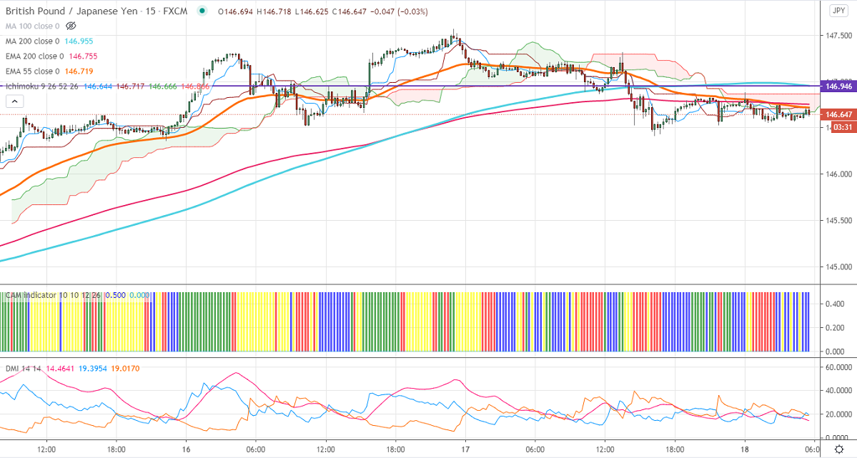 The pair's significant resistance at 147.95, any convincing break above confirms bullish continuation. A jump till 150/151.20 possible. On the lower side, near-term support is around 146.40. An indicative break below will drag the pair down till 146/145.80/145/144. Significant trend reversal only below 144. A violation below will drag the pair to 142.80.