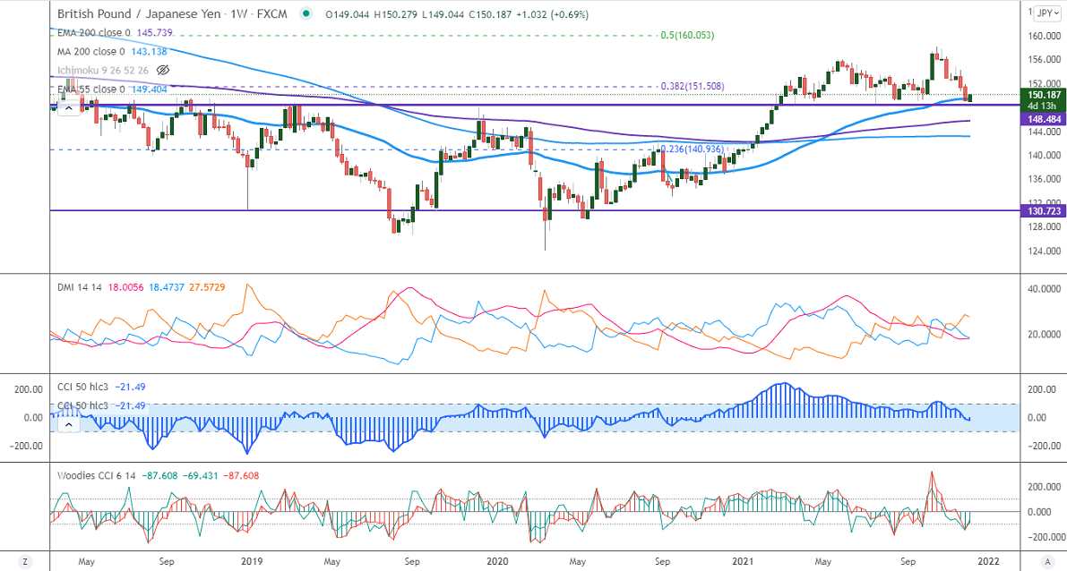 GBPJPY continues to trade weak for the past seven weeks on the weak Pound sterling. GBPUSD was one of the worst performers the previous week on Brexit uncertainties and hawkish Fed Chairman comments. Any breach below 1.3180 confirms bearish continuation. The intraday trend of GBPJPY is bearish as long as resistance 150.80 holds. It hits an intraday high of 149.67 and is currently trading around 149.609.