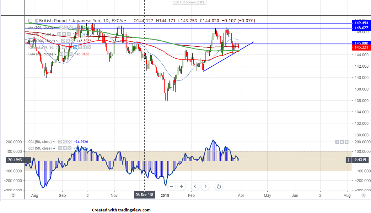 GBPJPY trading lower after hitting high of 146.50 yesterday on strong yen and Brexit uncertainty. UK MPs has rejected all alternative options yesterday.Proposals for a customs union with the EU were rejected by 272 to 264 and plan for another referendum got failed by 295 to 268.They also rejected all 8 indicative Brexit votes including no deal,a common market ,Labour’s alternative plan etc.GBPUSD declined till 1.31650 and shown a minor recovery.The pair hits intraday low of 145.08 and is currently trading around 145.17.