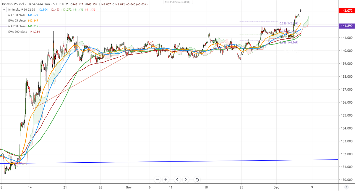 As per our analysis, GBPJPY is trading higher and jumped more than 200 pips till 143.187 at the time of writing. It hits fresh 5-1/2 month high on the strong Pound sterling. It is currently trading around 143.10.
