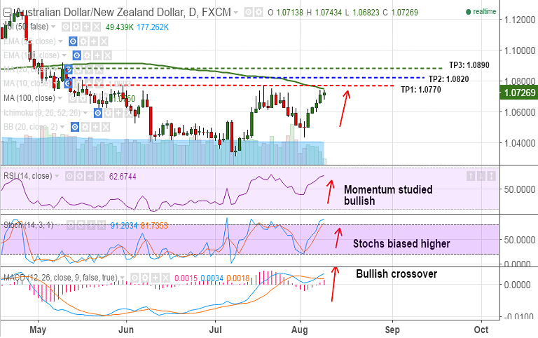 - AUD/NZD intraday bias higher. Momentum heavily bullish.