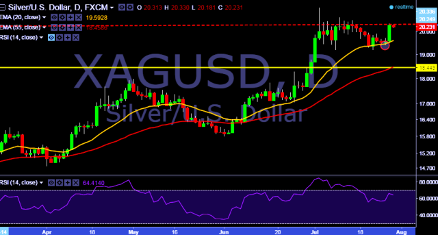 - XAG/USD is currently trading around $20.23 marks.