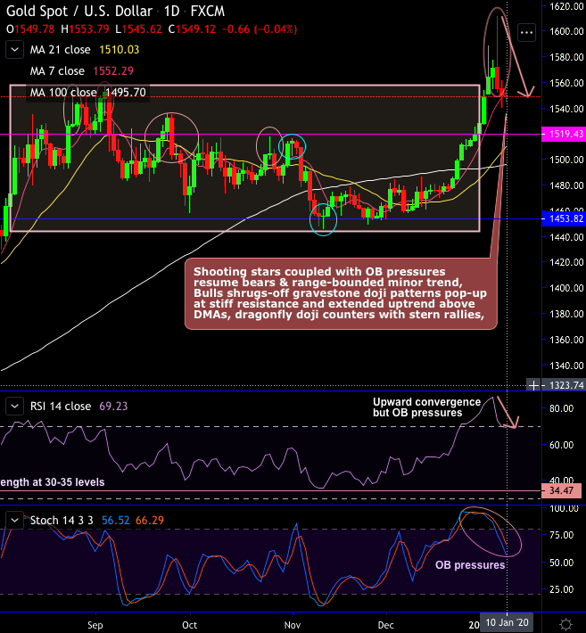 Technically, XAUUSD (Gold) price chart forms shooting star patterns at 1564.40 and 1564.79 levels.