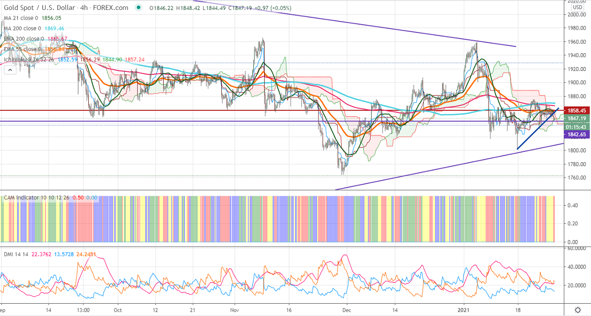 It is facing strong support at $1837, violation below targets $1820/$1800.On the higher side, near term resistance is around $1856, any indicative break above that level will take till $1865/$1875/$1885/$1900.