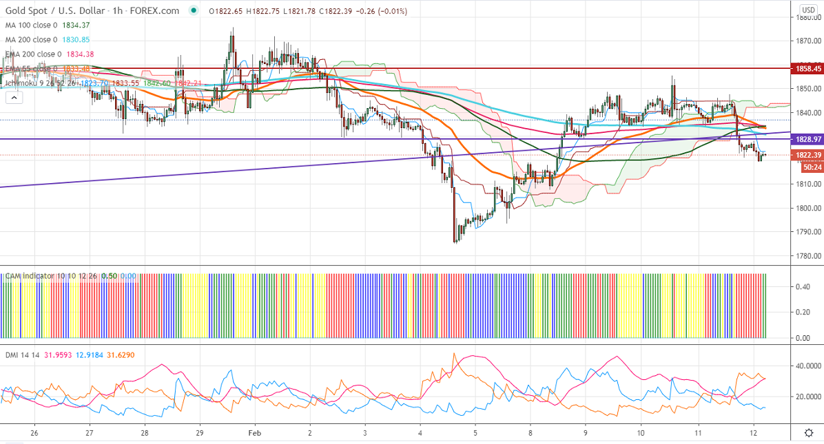 Gold continues to trade weak despite the weak US dollar. The yellow metal declined due to strong global stock markets on upbeat market sentiment. The progress in US stimulus, coronavirus vaccine rollout is also putting pressure on the gold at higher levels. Markets eye Sino-US trade talks which are set to happen after Chinese New year. The short term trend is still neutral as long as resistance $1860 holds. US dollar index continues to trade lower for fourth consecutive days; violation below 91 confirms further weakness.