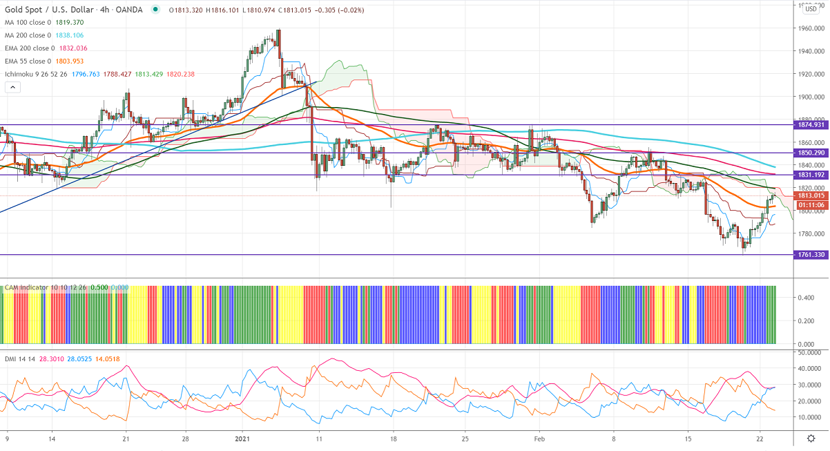 Gold recovered more than $50 on the weak US dollar. The US dollar index has shown a sell-off, any close below 90 will drag the index down to 89.20 level. The yield surged and hits a fresh year high on the US economic recovery prospectus. Markets eye US Fed Chairman Powell testimony and Conference board consumer confidence for further direction.