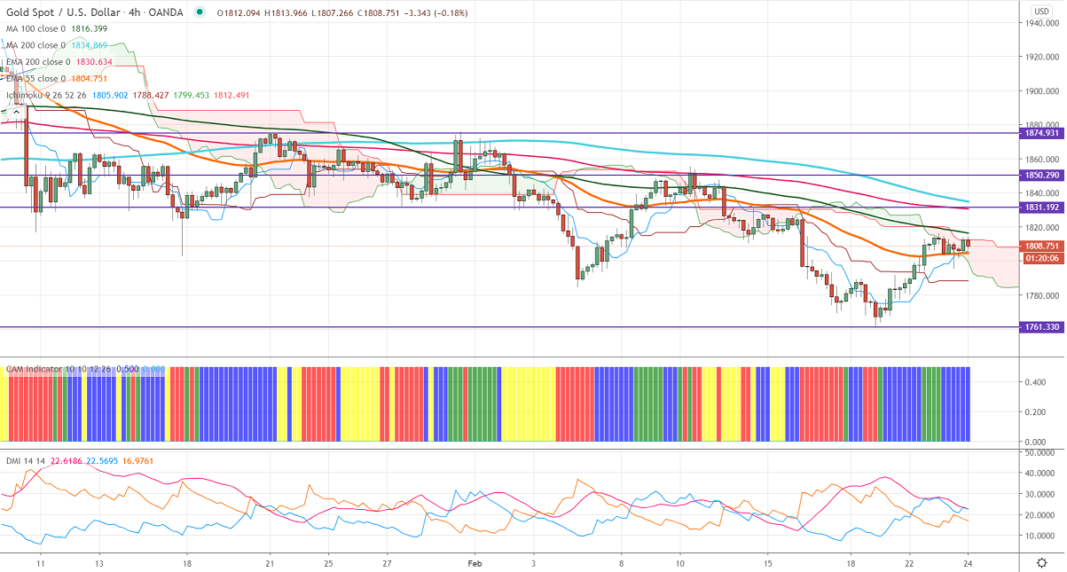 Gold is consolidating after a minor jump to $1816. The US dollar index declined slightly after a dovish comment from Fed chairman Powell. In the semi-annual testimony, Powell stated that the decline in the number of coronavirus cases and hospitalization and ongoing vaccinations has increased hopes of the normal condition later this year. The yield has lost more than 5% after hitting a multi-year high. The index of consumer confidence rose to a 3-month high at 91.3 in Feb better than the forecast of 90.