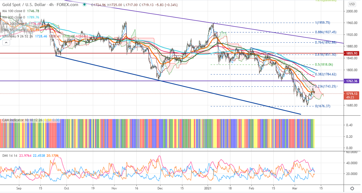 Gold was trading higher for the past two trading days on US dollar weakness and slight profit booking in US bond yield. US 10-year bond yield lost nearly 10% after forming a temporary top around 1.622%. DXY continues to trade weak for third consecutive days and declined more than 100 pips is supporting the yellow metal price. US president Biden signed a $1.9 trillion stimulus bill to boost economic recovery.