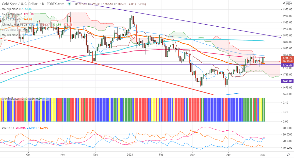 Gold surged more than $30 from yesterday's low of $1766 on a minor sell-off in US bond yields. The optimistic comment from Fed Chairman Powell yesterday has dragged the yellow metal down. The minor pullback in the US dollar index from a low of 90.86 is preventing further upside. The yellow metal hits a high of $1798 and is currently trading around $1789.60.