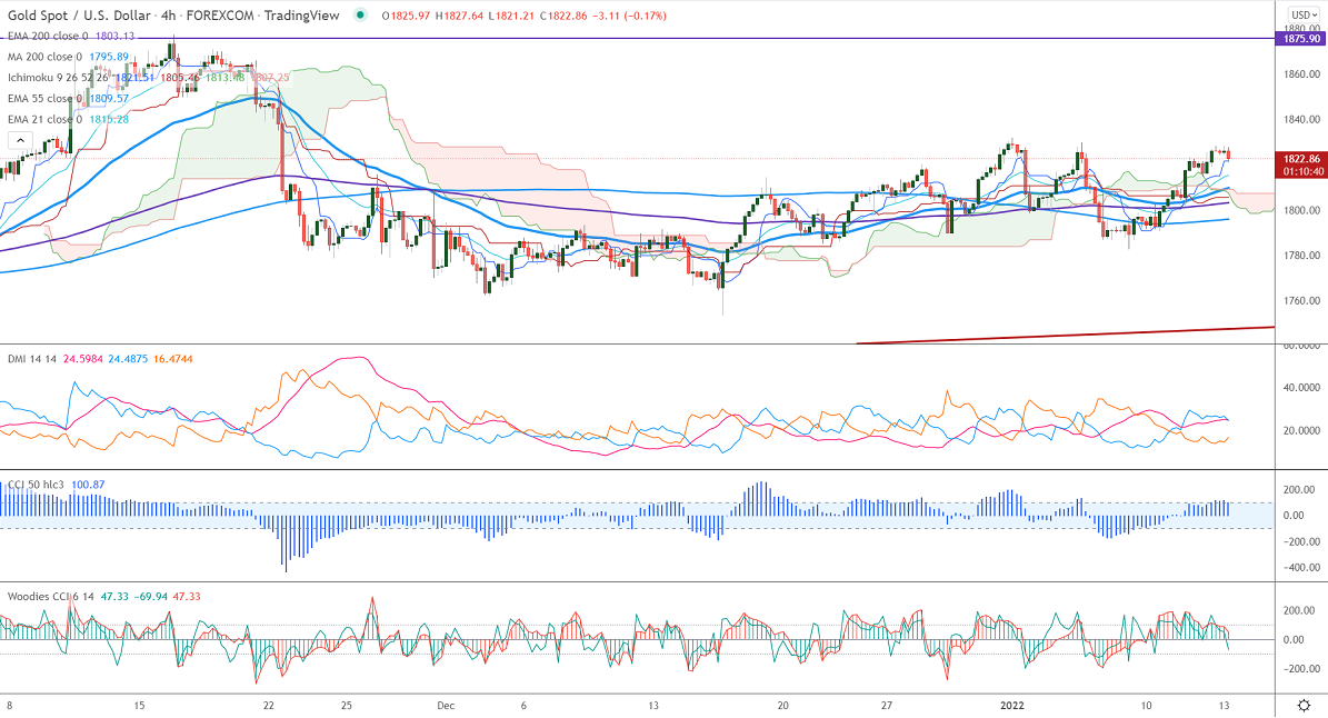 Gold regained sharply on the weak US dollar. The US dollar index lost more than 50 pips after US CPI data. The yearly inflation surged by 7%, the highest level since June 1982. Markets eye US PPI data today for further direction. Gold hits an intraday high of $1828.21 and is currently trading around $1825.42.