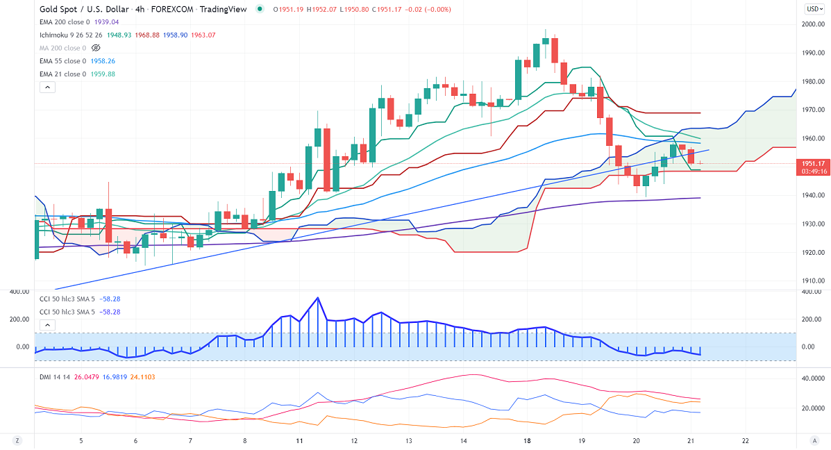 Gold continues to trade lower despite minor profit booking in US treasury yields. The precious metal kept calm after US housing data. Existing home sales declined for a second consecutive month to a seasonally adjusted annual rate of 5..77 million. Markets eye US Fed chairman Powell's speech today for further direction. The increase of coronavirus in China and The yellow metal hits an intraday low of $1950 and is currently trading around $1951.71.