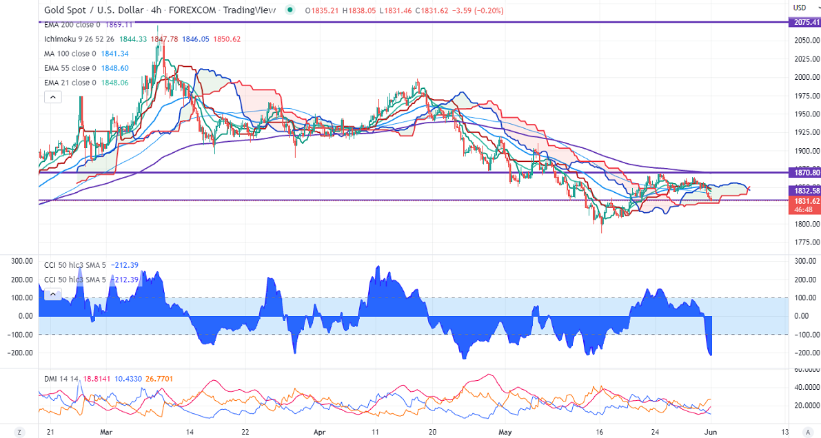 Gold lost its shine due to a minor pullback in the US dollar. The US dollar index gained above 102 and pared most of its gains made yesterday. The surge in crude oil prices after the EU imposed new sanctions on Russia also puts pressure on the yellow metal. According to the CME Fed watch tool, the probability of a 50 bpbs rate hike in Jun jumped to 97.7% from 93.3% a week ago.